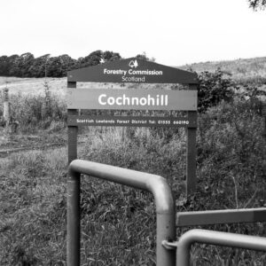 A short drive back towards Hardgate brings us to a pitted single-track road. On one side is a water tower reminiscent of the German landscape photographers, the Bechers. A little further on we spot a sign for Cochnohill, an area of Forestry Commission land. Passing a family out riding we reach the point where road runs out. It’s still a long way to Duncolm but by this stage even my husband’s lost the will to go on. The hill will have to wait until another day.