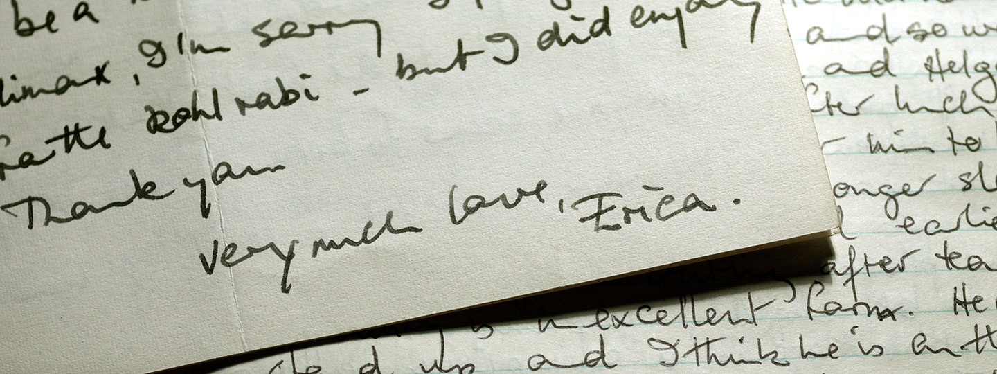 The above image is of Erica's handwriting - a rare thing to see these days. When was the last time any of us wrote something by hand? When I was nine, I found a book in my local library about graphology and was instantly hooked - over the decades I became an expert in handwriting analysis and to this day I'm able to tell a person's character, psychological strengths and weaknesses, their state of health from their handwriting, Our handwritten script is as unique as our fingerprints. When was the last time any of us wrote more than a greetings card?